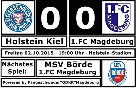 ![]() 1 Punkt mehr auf dem Konto Holstein Kiel - 1.FC Magdeburg 0:0 Zuschauer:6.515(ca 500-600 Clubfans) 70min das Spiel dominiert,klare Chancen liegen gelassen!In den letzten 15 min,die Störche machen lassen,aber man hatte ja noch Glinker! Aber endlich sind die Freitagsspiele(Auswärts)vorbei!!!! |