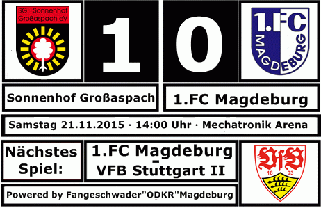 ![]() Der 1.Auswärtssieg lässt weiter auf sich warten... SG Sonnenhof Großaspach - 1.FC Magdeburg 1:0 Tore:1:0 Rizzi(82.FE) Zuschauer:2.300 Zuschauer Pressekonferenz - SG Sonnenhof Großaspach gegen 1. FC Magdeburg 1:0 (0:0) - www.sportfotos-md.de |