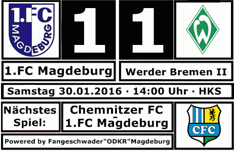 ![]() 1.FC Magdeburg - SV Werder Bremen II 1:1 Tore:1:0 Chahed(46.) 1:1 Kazior(88.) Zuschauer:15.873 |