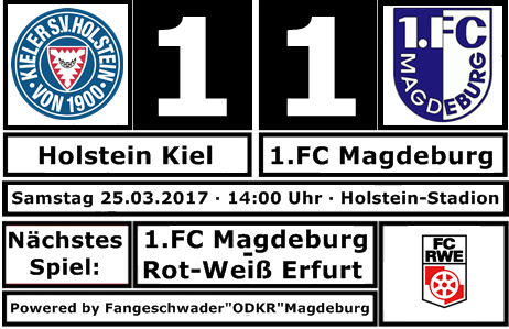 ![]() Holstein Kiel vs 1.FC Magdeburg 1:1 Tore:0:1 Kath(49.) 1:1 Czichos(85.) Zuschauer:8.420,davon 2300 FCMler Pressekonferenz nach dem Spiel! |