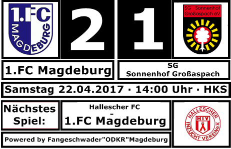 Wir danken allen Beteiligten/Helfern und Organisatoren,für den unglaublich geilen Tag!!! HEIMSIEG Patz 3 zurück geholt !!! Beckus mit einen Doppelpack 1.FC Magdeburg vs SG Sonnenhof Grossaspach 2:1 Tore:1:0 Beck(6.) 1:1 Schieck(34.) 2:1 Beck(67.) Zuschauer:18.550 ![]() |