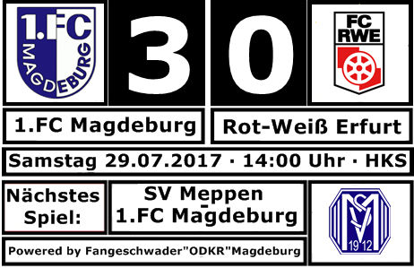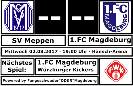 ![]() ![]() Unser FC Magdeburg hat im 1.Heimspiel der Saison 17/18 mehr als überzeugt und hat damit so ,die bittere Niederlage wieder ausgeglichen!Support Mega! Am kommenden Mittwoch den 02.08.2017,treffen die Blau Weißen Krieger, auf den Aufsteiger Meppen!Unterstützung aus der Heimat ist Gewiss! |