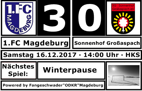 VORLÄUFIGER WINTERFAHRPLAN DES 1. FC MAGDEBURG Härtel-Team bestreitet drei Testspiele Am Samstag, 16.12.2017 traff der 1. FC Magdeburg im letzten Heimspiel des Jahres auf die SG Sonnenhof Großaspach, und fegte diese mit einem 3:0 vom Platzt! ![]() Derweil steht der vorläufige Winterfahrplan des Drittligisten fest. Am Dienstag 02.01.2018 steigt die Mannschaft von Jens Härtel in den Trainingsbetrieb ein, wenn der Cheftrainer des 1. FC Magdeburg zum Laktattest bittet. Die kurze Vorbereitungszeit nutzt das Drittliga-Team und tritt am Freitagabend, 05.01.2018 in der GETEC-Arena beim Wernesgrüner-Cup an (die Gruppenauslosung folgt in Kürze). Bereits am darauf folgenden Samstag begeht der 1. FC Magdeburg seine Testspielreise, welche im englischen Manchester vom 06.01.2018 bis 09.01.2018 stattfindet und wird dort voraussichtlich zwei Testspiele gegen die englischen Teams Fleetwood Town und Bolton Wanderers bestreiten. Den letzten Test bestreitet der 1. FC Magdeburg im Stadion der Freundschaft, wenn Blau-Weiß am Sonntag, 14.01.2018 um 15:00 Uhr auswärts auf NOFV-Nordost Regionalligaspitzenreiter FC Energie Cottbus trifft. Die Termine im Überblick: 02.01.2018 – 12:00 Uhr Trainingsauftakt 05.01.2018 – 17:00 Uhr Wernesgrüner-Cup in Magdeburg (GETEC-Arena) 06.01.2018 – Beginn Testspielreise England (Manchester) 07.01.2018 – 13:30 Uhr – Fleetwood Town – 1. FC Magdeburg (Fleetwood Town Training Ground) 08.01.2018 – Bolton Wanderers – 1. FC Magdeburg (Anstoßzeit und Austragungsort noch offen) 09.01.2018 – Ende Testspielreise 14.01.2018 – 15:00 Uhr – FC Energie Cottbus – 1. FC Magdeburg (Stadion der Freundschaft, Cottbus) Am Montag, 22.01.2018 steigt der 1. FC Magdeburg am 21. Spieltag der 3. Liga 2017/2018 in den Punktspielbetrieb ein. Auswärts treffen die Elbestädter in Erfurt um 20:30 Uhr auf den FC Rot-Weiß Erfurt. Kurzfristige Änderungen den Vorbereitungsplan betreffend wird der 1. FC Magdeburg entsprechend bekannt geben. Gruppenauslosung für den Wernesgrüner-Cup https://www.facebook.com/1.fcmagdeburg/v ideos/1656739314387452/ |